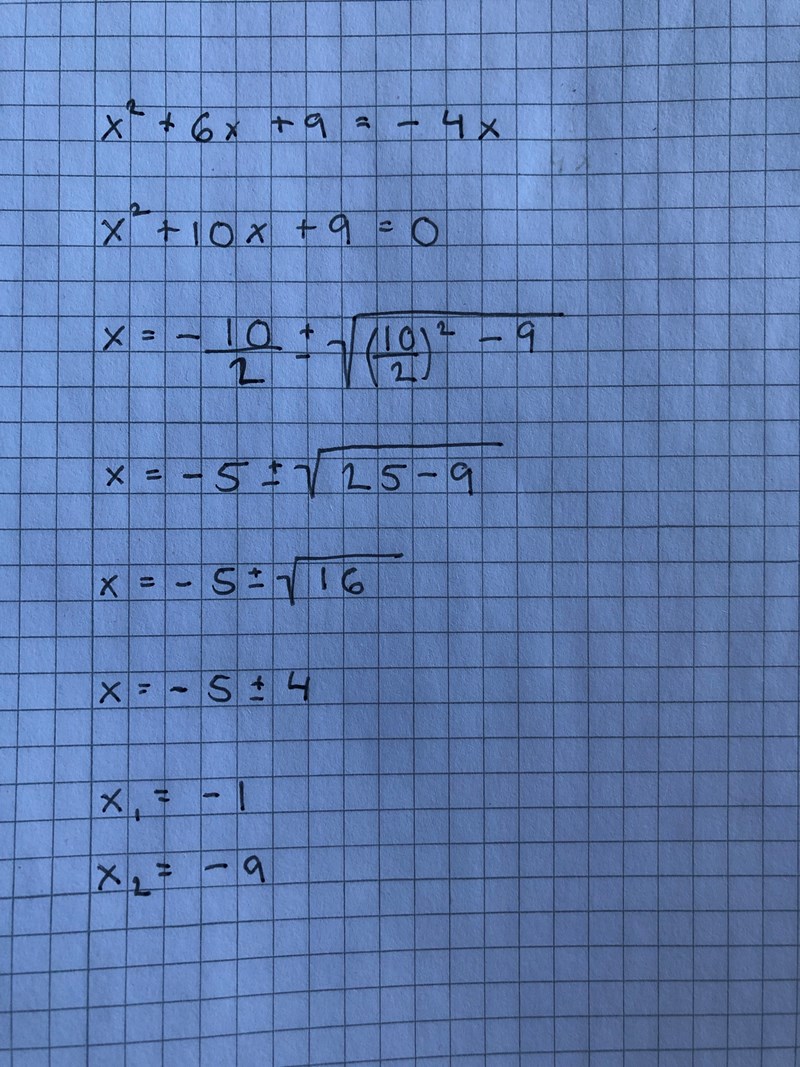 Sen löser du ut x med hjälp av pq formeln eller kvadratkomplettering