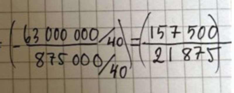 sen är det stopp. Tror att jag ska få -39888 /554 som är -72 då