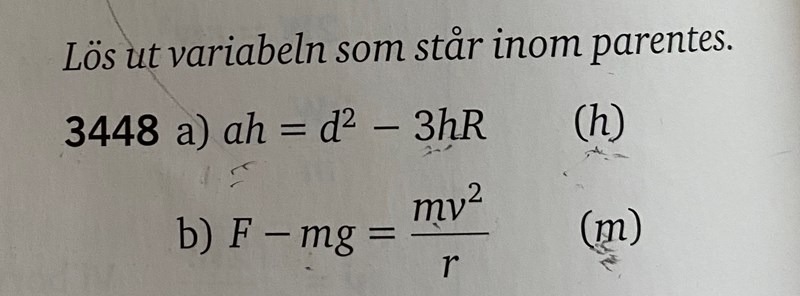 Hur långt har du kommit själv? Tips: se till att få alla termer som innehåller h (om det är a-uppgiften) på samma sida, enklast på vänstersidan.