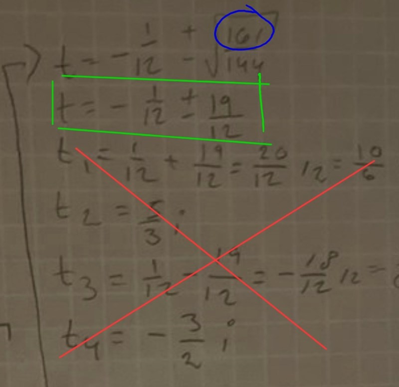 Hej ja ska försöka lösa denna ekvation som innehåller en x^4 term. Så jag har substituera (heter det så?) t=x^2 och allt de där. Ja har fått mina svar och dem är fel jag förstår inte vad som gått fel…?