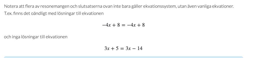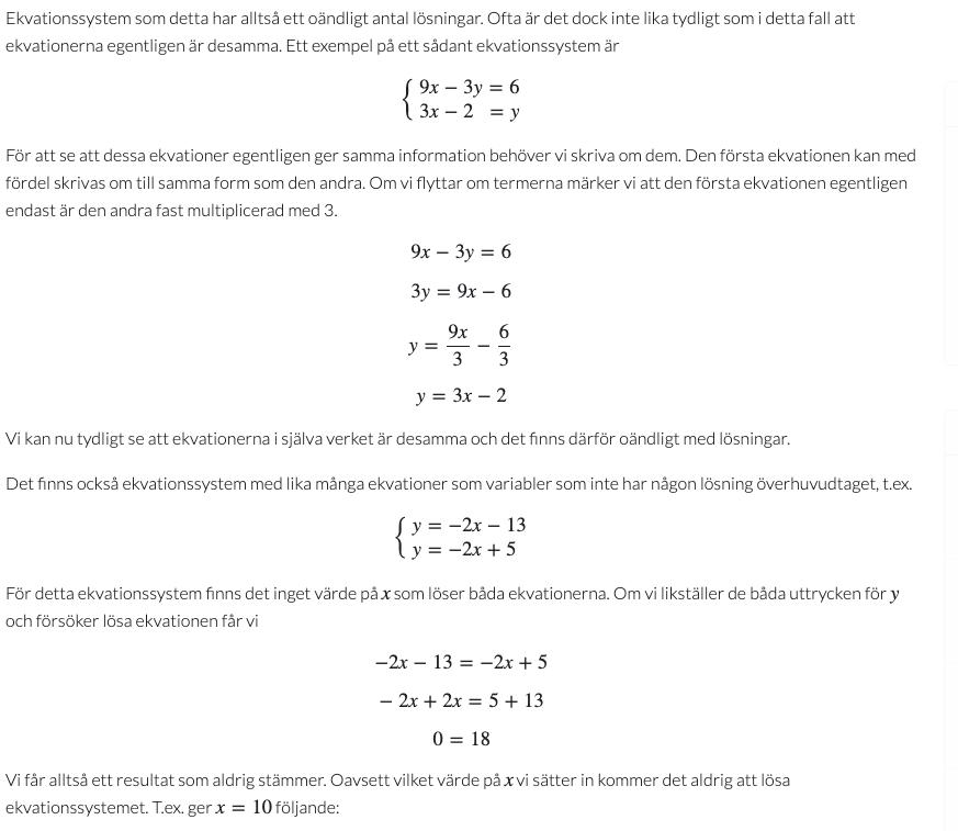 Det är klart det stämmer, kolla på deras exempel! Ekvationerna måste vara olika för att detta ska gälla. Två ekvationer som säger samma sak hjälper dig ju inte.