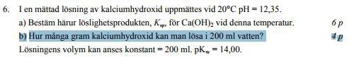 Om du kan lösa x mol kalciumjoner så kan du lösa 2x mol hydroxidjoner. Lös ekvationen
