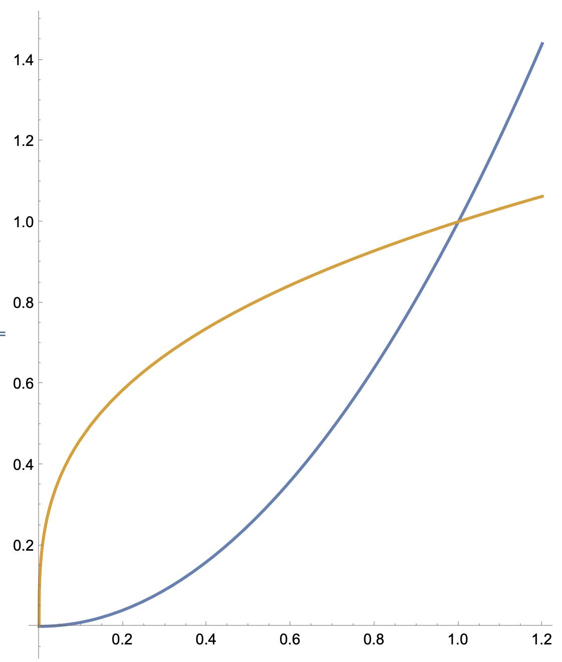 Kortfattat: När jag vill se formen av en rotationskropp som roterar runt y-axeln ska jag rita upp funktionerna y=... eller x=...? (funktionerna ovan)