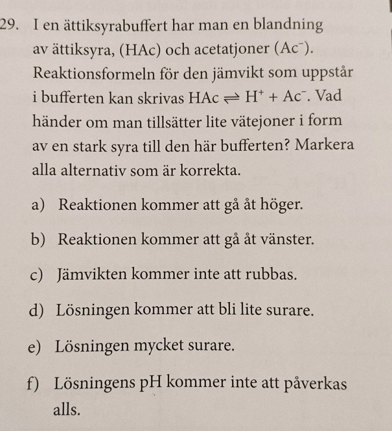 Så vår lösning attackeras av en väldigt stark syra. Reaktionen går åt vänster och lösningen blir mycket surare skrev jag. Alltså en väldigt stark syra droppar många, många arga oxoniumjoner. Bufferter kommer att göra vad den kan men efter ett tag den måste väl erkänna att den är besegrad, eller hur?