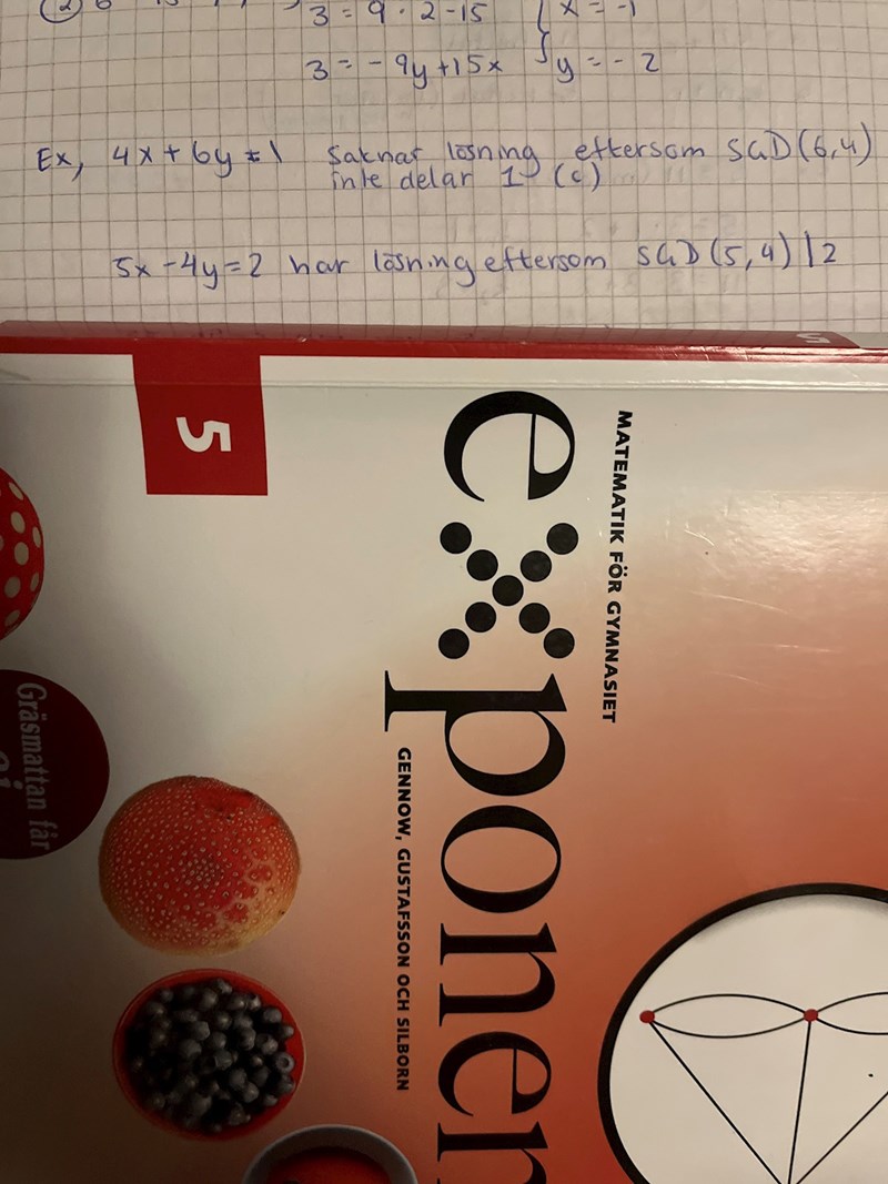 så här har jag förstått det. I den första ekvationen är den SGD=2 däremot kan jag inte dela 1 på 2 och få ett heltal. Därav saknar ekvationen lösning. I den andra ekvationen är den SGD =1 och jag kan dela 2 på 1 och få ett heltal. Därmed finns en lösning. Är det rätt tänkt?