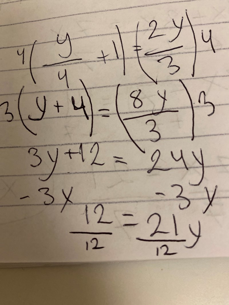 Louis skrev:Andra raden, höger led. Meningen är 3:orna ska förkortas bort, men du har också multiplicerat 8y med 3.
