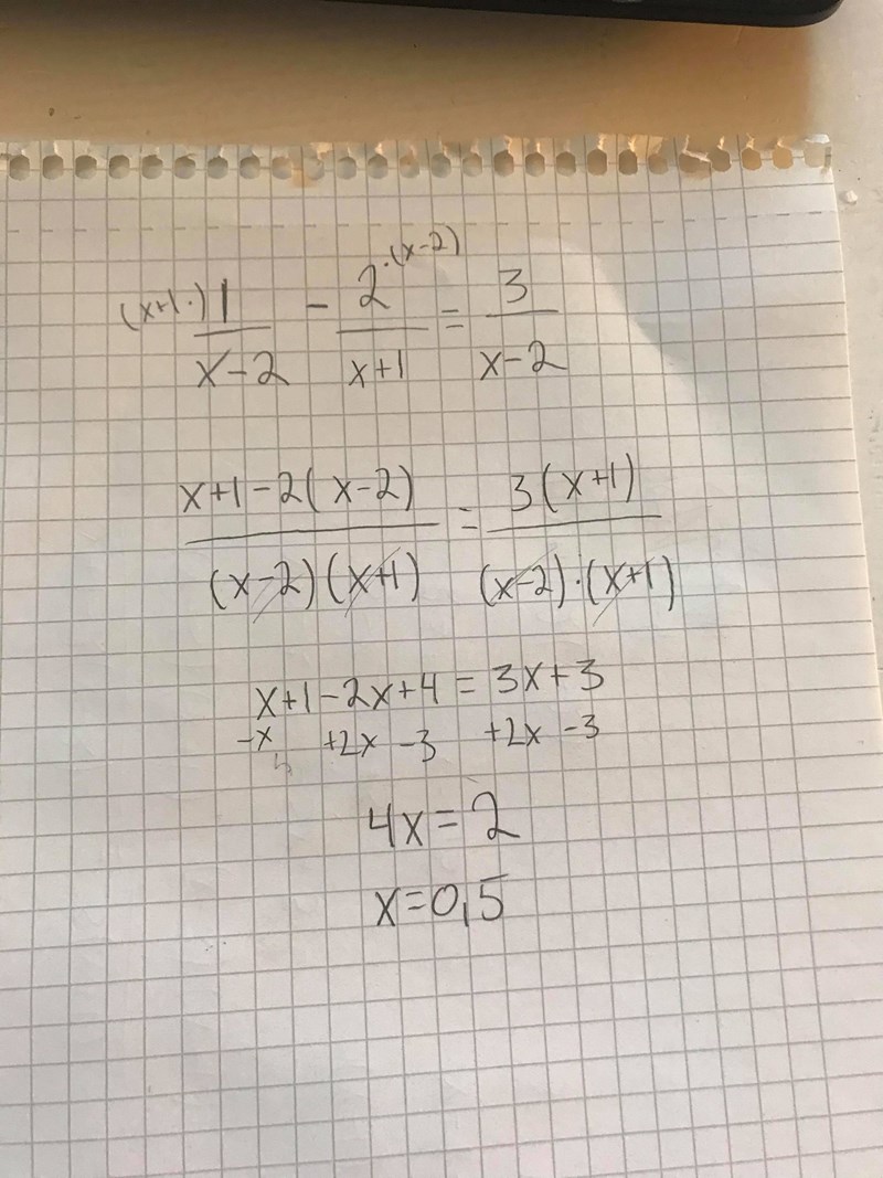 Var noggrann med parenteser i fortsättningen! " 1/x-2 " betyder . Du kan använda formelskrivaren om du vill vara extra tydlig. Tryck på knappen som ser ut som ett rottecken ovanför textrutan när du skriver ditt inlägg. :)