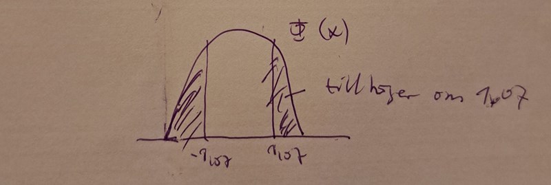 Jag förstår inte den här förklaringen där de säger " summan av arean till vänster om -1.07 och arean till höger om 1.07 dvs 0.28" och sen det här med vad 3700 ingår i Iu innebär? Jag vet inte ifall de syftar på den första bilden när de säger arean till höger om 1.07?