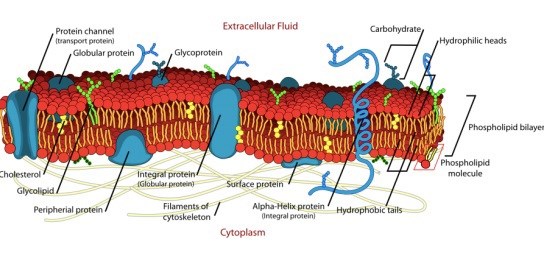 Så om jag förstår ditt svar rätt, en del proteiner sträcker sig över hela membranet (inuti och utanför) medan andra bara är i kontakt med en del av membranet. Som i den här bilden, där det finns små proteiner vid ytan och avlånga längs hela cellmembranet eller?