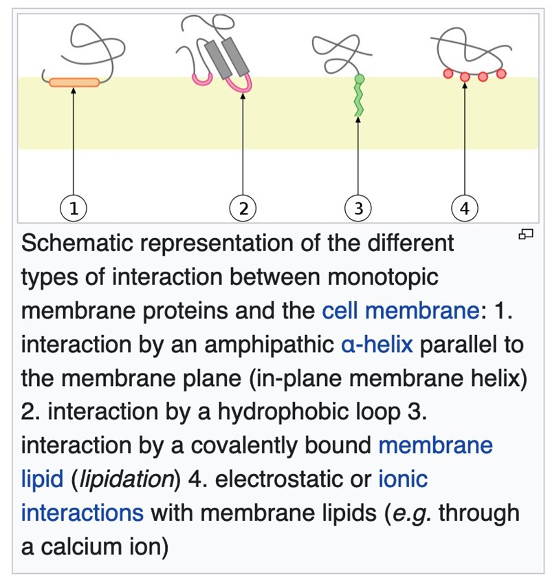 Ja så skulle man också kunna uttrycka det. Men det finns dock flera olika typer som skulle kunna motsvara det som beskrivs med "löst bundna". Som t.ex. peripherial och surface protein i din bild. Några typer av interaktioner illustreras i följande bild från Wikipedia. Endast en del av proteinerna binder till membranet och kan fås att "släppa taget", till skillnad från "integral membrane protein" typen i din bild.