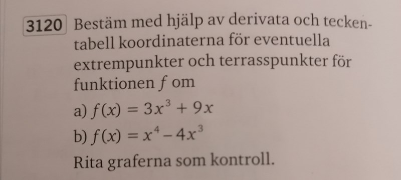 Du har inte löst den uppgift som är på bilden. Du har inte deriverat funktionerna, du har inte gjort någon teckentabell, du har inte ritat graferna.