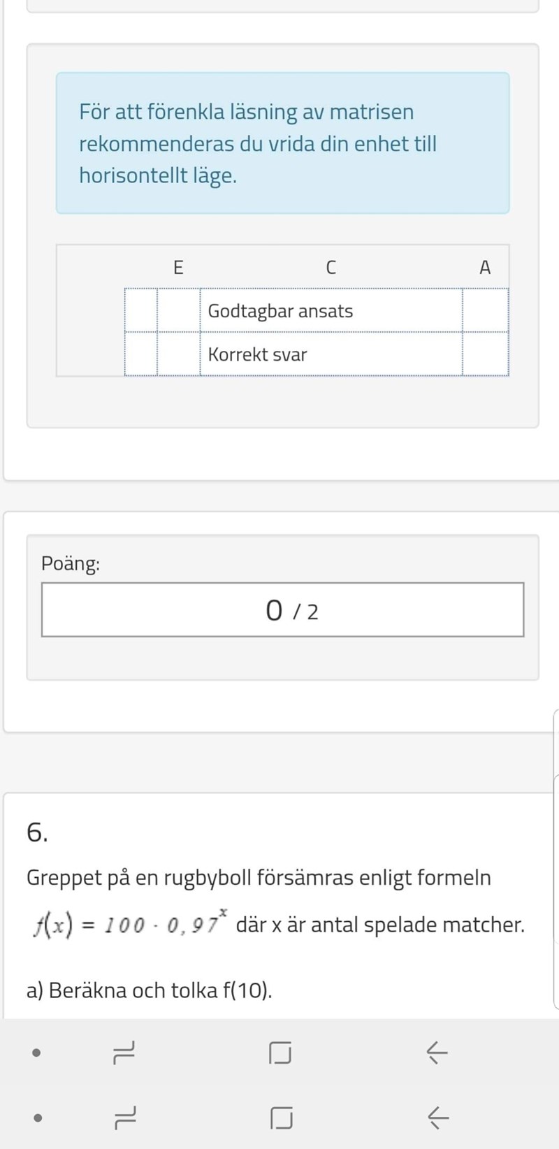 Tiko skrev:F(10) = 100*0.97^10 = 73.74 när bollen har spelats i 10 matcher
