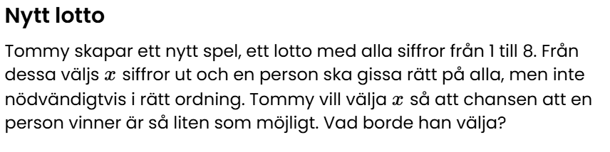 För att chansen att vinna ska vara så liten som möjligt bör Tommy välja det värde på x som ger det största antalet möjliga kombinationer.