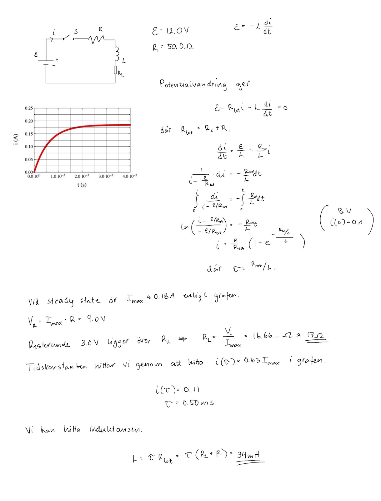 Tidskonstanten är den tid det tar för strömmen att öka till 63,2% av sitt maxvärde. Allt detta kan grafen ge mig och med sambandet kan jag lösa ut L?
