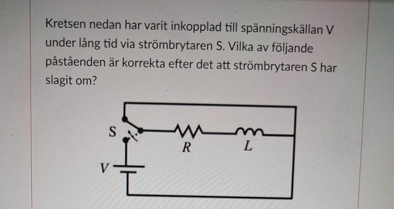 sictransit skrev:Ja, absolut. Likströmskrets med R och L i serie. Batteriet har varit inkopplat en ”längre tid”.