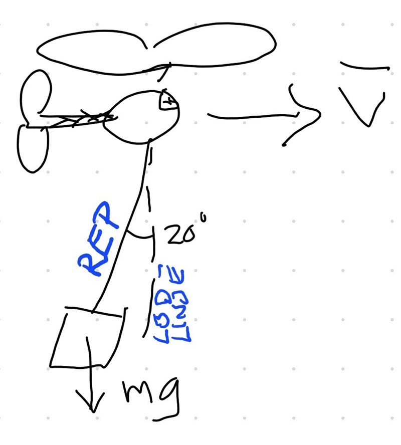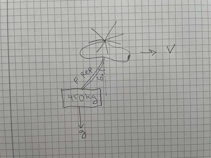 Då förstår jag inte din skiss. Jag ser inte var helikoptern är och i vilken riktning den flyger. Det ser även ut som om betongblocket hänger vertikalt neråt.