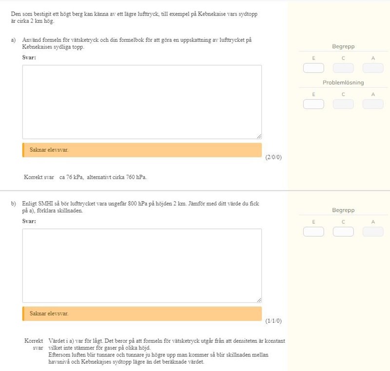 i den här uppgiften har man givet 1013 hPa vid havsnivå och funderar på hur man kan beräkna trycket högre upp. Räknar man rätt så får man rätt tryck, räknar man fel så får man fel tryck.