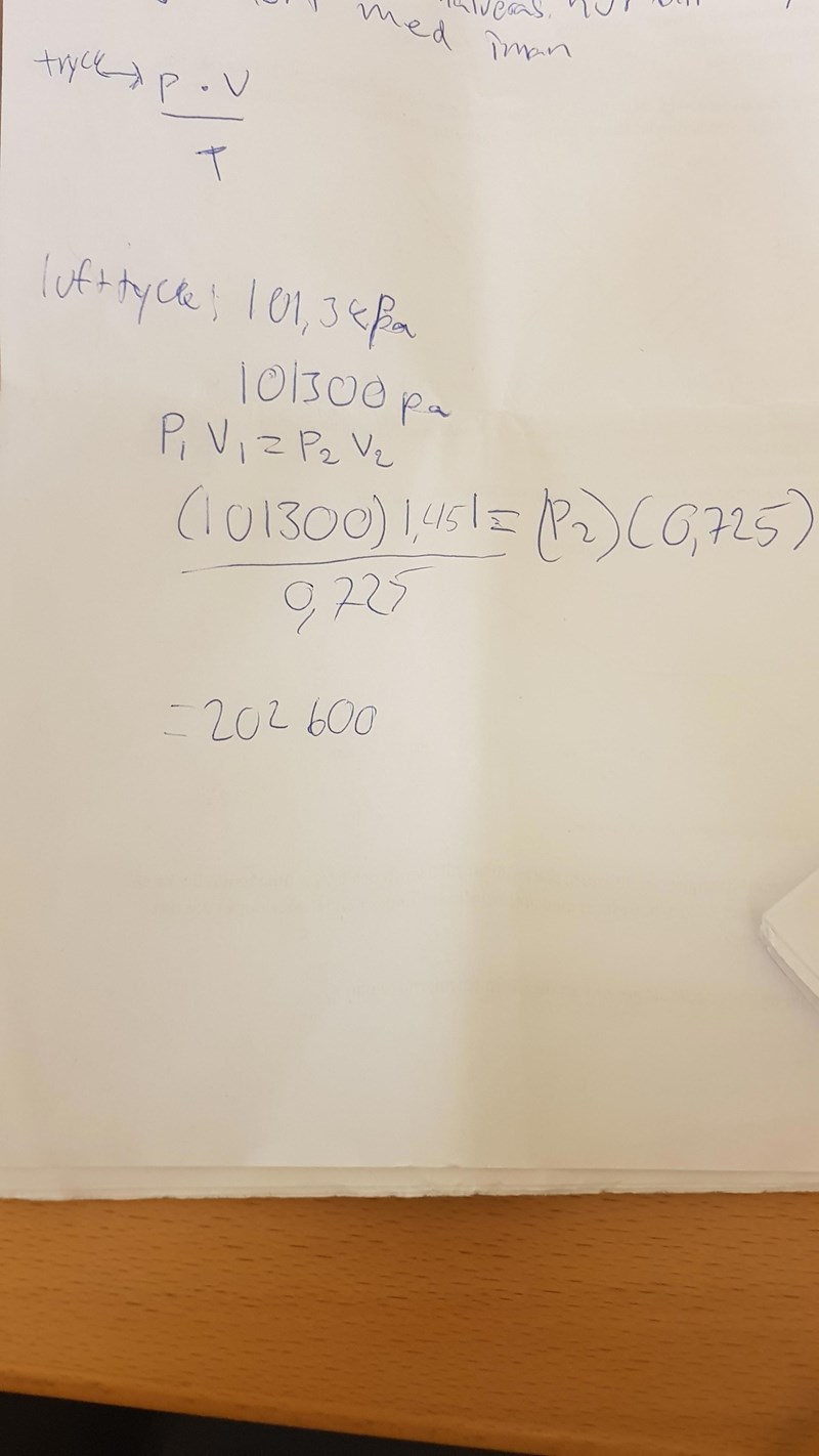 Det nya trycket blir alltså 2 atm medan det från början var 1 atm.