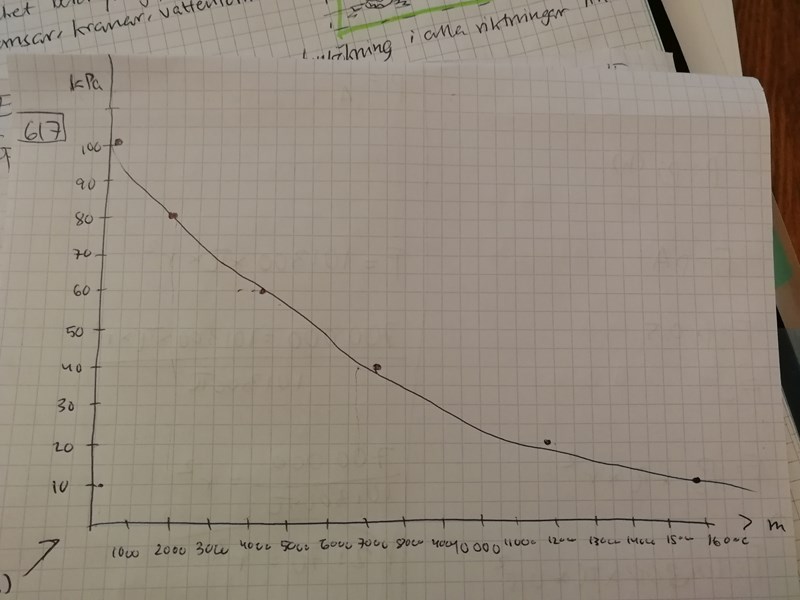 Du ska rita upp ett diagram så som du gjort, rita in en kurva så bra du kan och sedan läsa av vid 5100 m. Om du gör det ser du att trycket är ungefär 54 kPa.