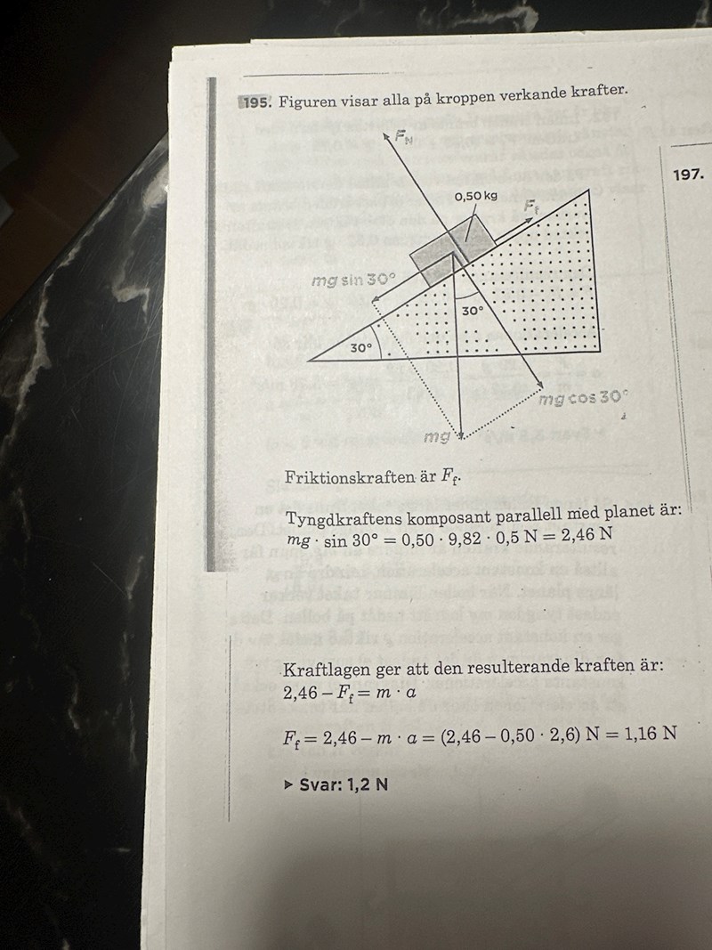 Jag behöver hjälp, jag har lärt mig att tyngdkraften är ner rakt streck från mittpunkt varför säger de att den motstå de är tyngdkraften komposant va? Jag hade svårt för en likande uppgift behöver en förklaring den är väll Ff som är motstånde kanteten