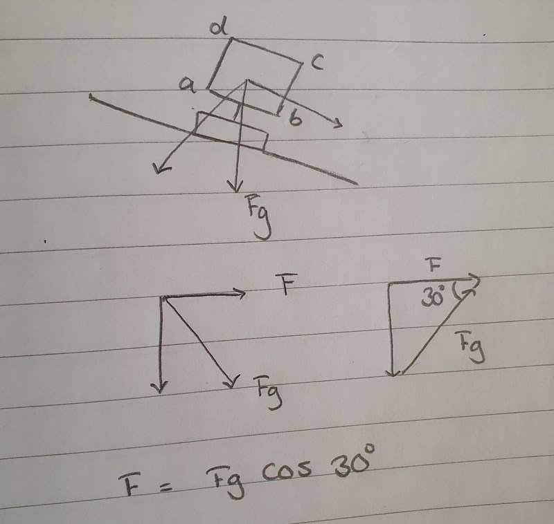 Jag tänkte på samma sätt som facit men istället för sin 30⁰ så var det cos 30⁰. Jag fattar inte varför de tänker att det är sinus nu.