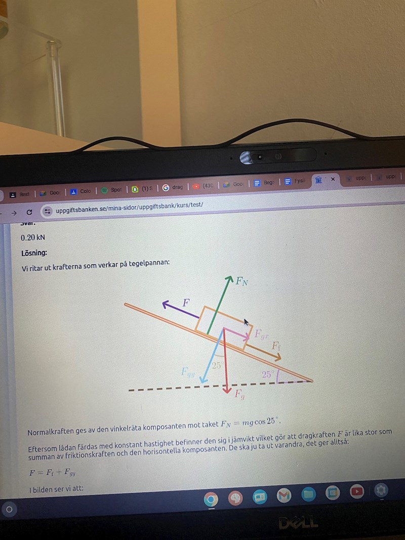 Yngve skrev:akuthjälphär skrev:Hej, undrar varför det står att dragkraften är lika med friktionskraften och kraftkomposanten fgy borde det inte vara fgx istället då fgy motsvarar normalkraften?