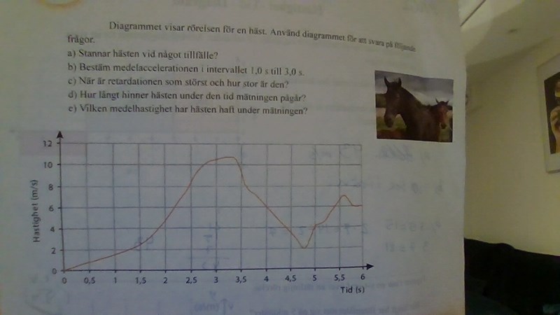 a): Vad innebär det att hästen stannat? Vad blir hastigheten då?
