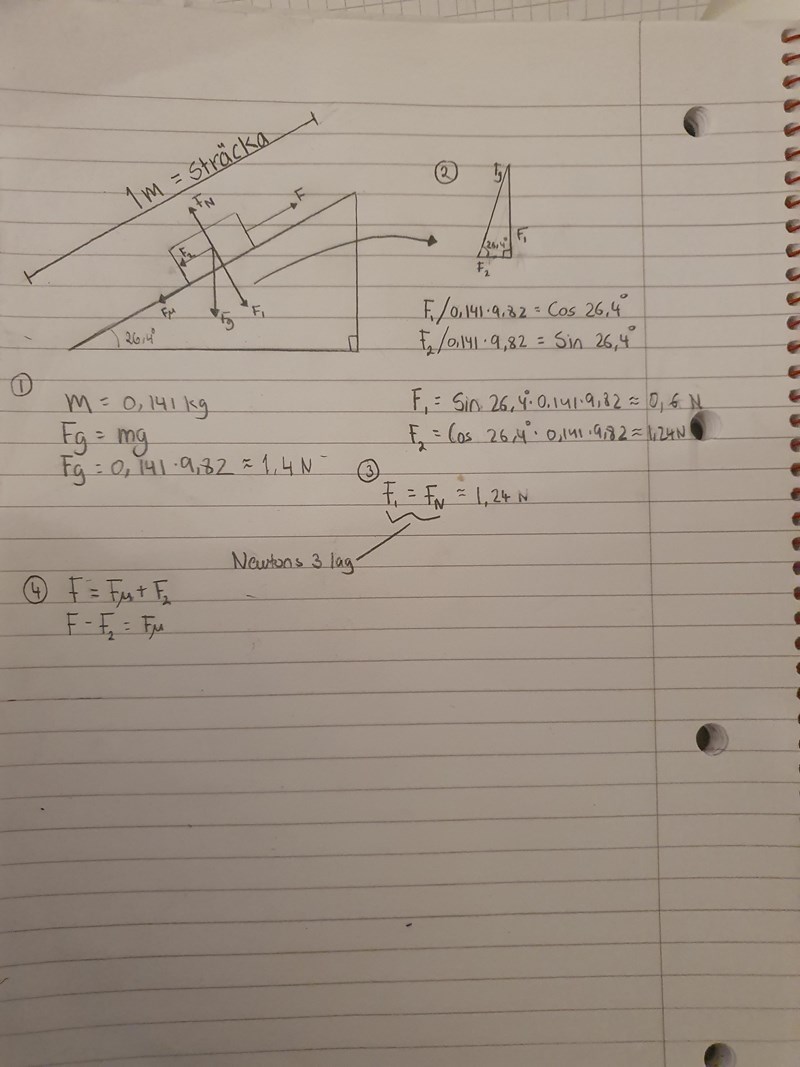 Tasnim79338 skrev:Vi kan försumma friktionen och sedan räkna ut den: F=Fmy+F2