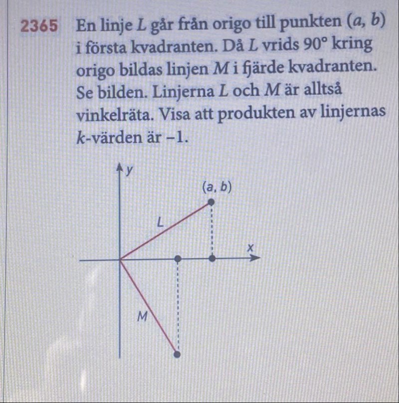 Jag har fastnat lite på denna uppgift, förstår inte riktigt hur jag ska visa att k värdet är -1, förstår enbart att m ska vara (b, -a) blir tacksam för hjälp!