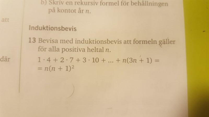 lyckades med ett induktionsbevis, vet dock inte om jag gjorde det ordentligt.