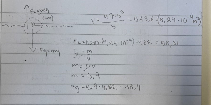 För det första är din bild konstig. En blykula flyter inte i vatten, den sjunker till botten.