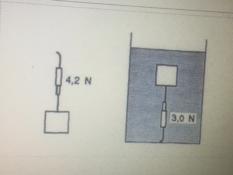 En träbit hängdes i en mycket lätt dynamometer, som då visade 4,2 N.