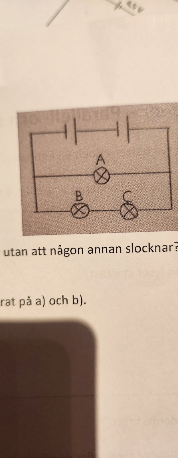 vrider du ur A händer inget med de andra eftersom den är parallellkopplad till B och C vrider du ur någon av B eller C slocknar båda dom men A lyser alltid.