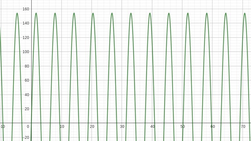 Grafen ovan ger att många x-värden mellan 0<x<180 grader resulterar i arean 154 cm2. Hur kan det stämma? sin(83.39) · 11 · 14 ger exempelvis inte värdet 154, men enligt grafen ovan stämmer det. Varför?