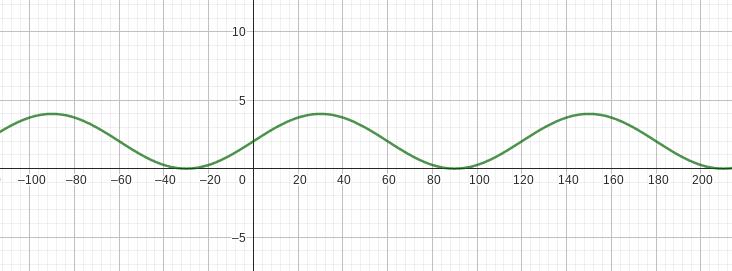 I figuren visas kurvan nedan som representerar y = 2·sin(3x)+2