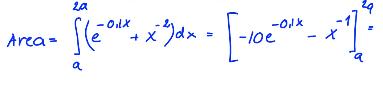 Jag ser att bilden stämmer men lyckas inte komma fram till den genom "formeln". Använder jag formeln får jag e-0.1x / -0.1 vilket också stämmer om den deriveras?!