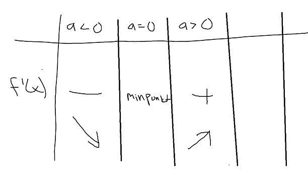 Vad som kvarstår är att avgöra vad som händer om a = 0, då blir naturligtvis f’’(0) = 0, så vi kan inte direkt säga om det blir max, min eller terrass.