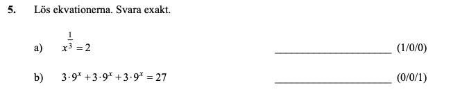 Men de aktuella frågorna ovan behöver du inte tiologaritmer för att lösa. Inte logaritmer alls, tycker jag, även om man kan använda dem. Bara hur rationella exponenter fungerar.