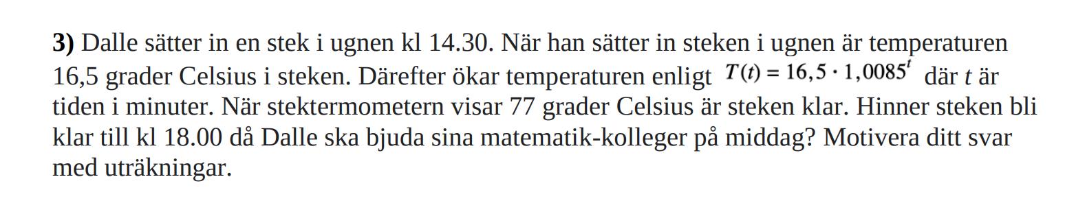 Beräkna temperaturen i steken klockan 18.00.