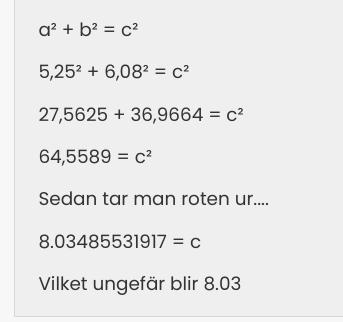 I den här uppgiften antar jag man ska använda Pythagoras sats...