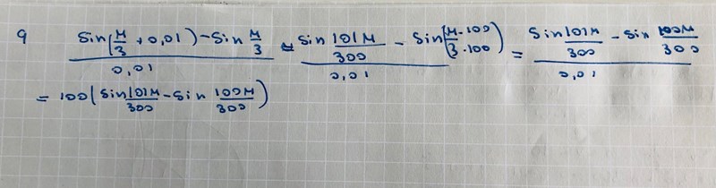 Ange vilket av alternativen A-H som är det bästa närmevärdet till sin(π3+0.01)-sin(π3)0.01