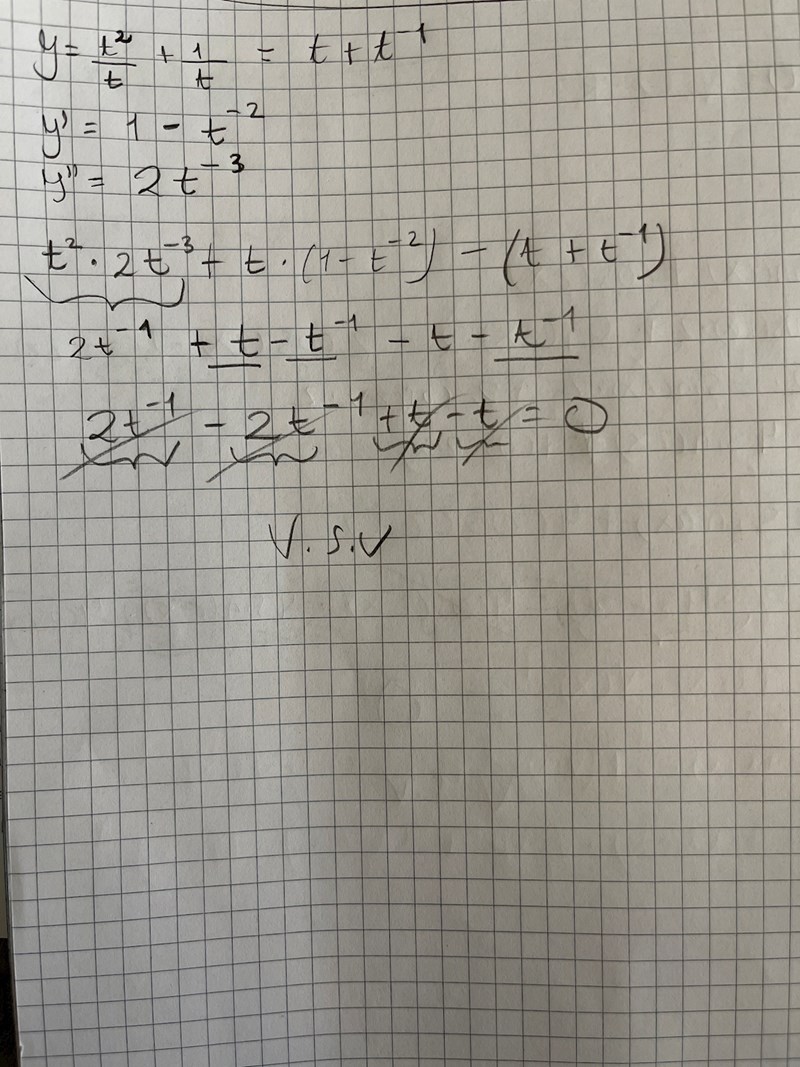 Jag ser inga fel. Det kan vara lättare att skriva t ex t^(-2) som 1/t^2 innan man förenklar men du verkar klara det galant ändå.