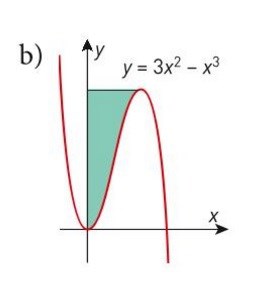 Det gröna området (vänster) är lika med en rektangel (mitten) minus arean under kurvan y (höger).