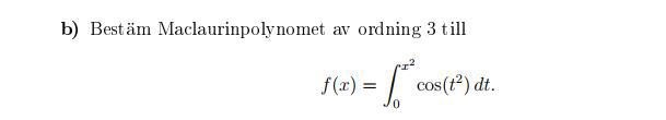 Steg 4. Använd satsen om unikhet av Maclaurinpolynom (eller vad satsen nu kallas i er bok) för att dra slutsatsen att det du fick fram i steg 3 verkligen är ett Maclaurinpolynom.