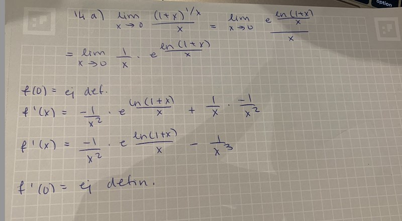 Hej! jag behöver hjälp med en uppgift som jag kämpade ett bra tag med :) Jag ska räkna följande ekvation (fråga a)) men kommer aldrig fram då ekvationen är ej definierad när x=0. Uppgiften och mitt försök till lösning bifogar jag nedan hoppas att någon snäll själ kan hjälpa till! tack på förhand!