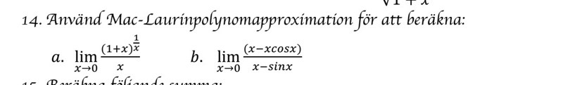 Istället för att införa e, testa att utveckla (1+x)1/x direkt