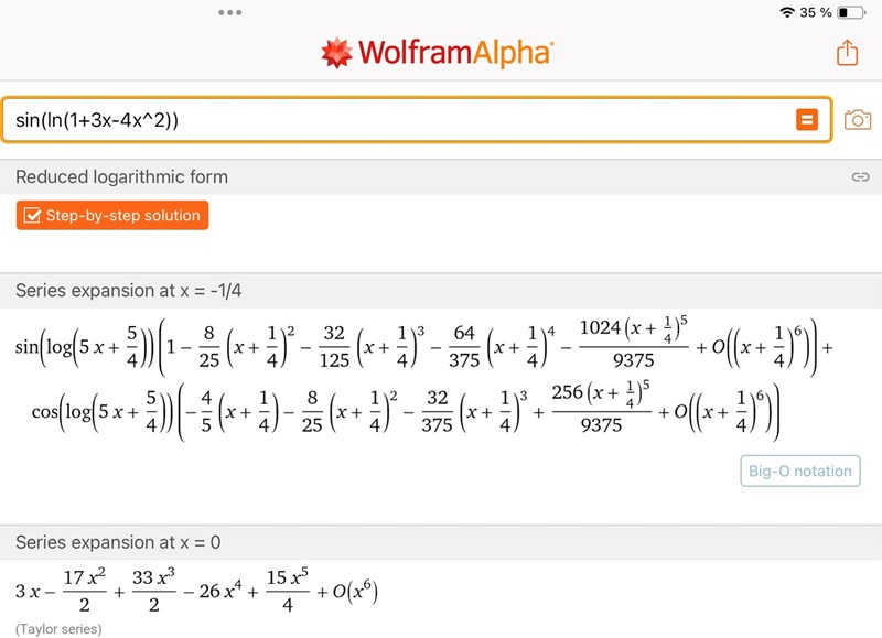 sin(ln(1-x) + ln(1+4x)) = sin(ln(1-x))•cos(ln(1+4x)) + cos(ln(1-x))•sin(ln(1+4x))