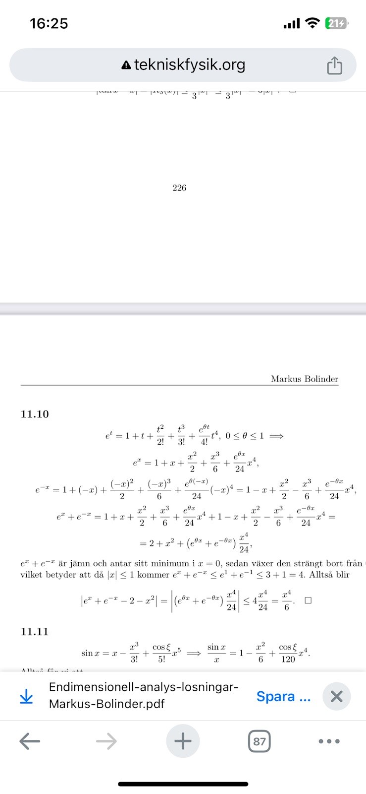 Där de skriver upp ex + e-x borde de skriva theta1 och theta2, men ojämlikheten gäller för vilken theta som helst (sannoliktvis en tredje theta) mellan 0 och 1.