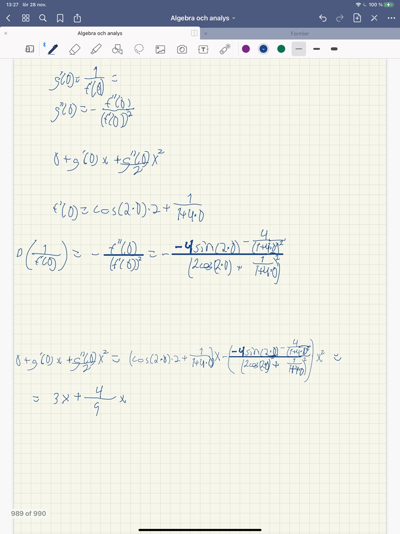 får då andraderivatan: -2/9, vilket fortfarande blir fel