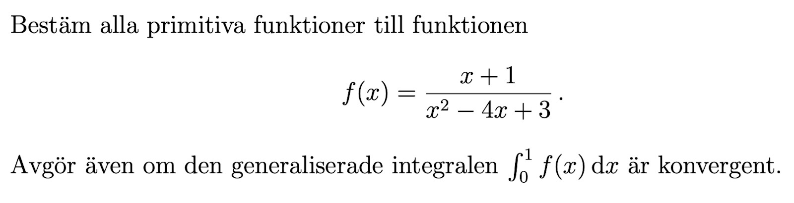 Det jag tycker är klurigt är andra delen, där man ska se huruvida den generaliserade integralen är konveregent eller inte.